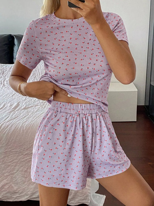 Floral Round Neck Top & Shorts Cozy Lounge Set